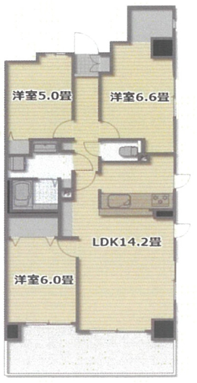 間取り詳細 | 洋室6.6帖 洋室5.0帖 洋室6.0帖 リビングダイニングキッチン14.2帖 |